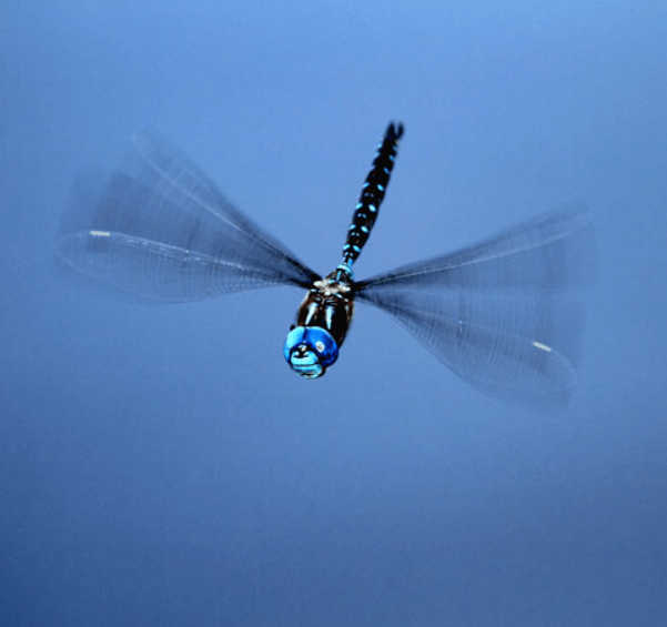 Dragonflies have a head that is something like 80% compound eye, wrapped around nearly their whole head. This gives them excellent vision: They can see in nearly 360 degrees at a very high ‘refresh’ rate with something akin to binocular vision.